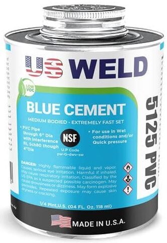 Premium PVC cement specifically formulated to cure extrernely fast in wet conditions and/or where quick: pressurization of piping system is required.